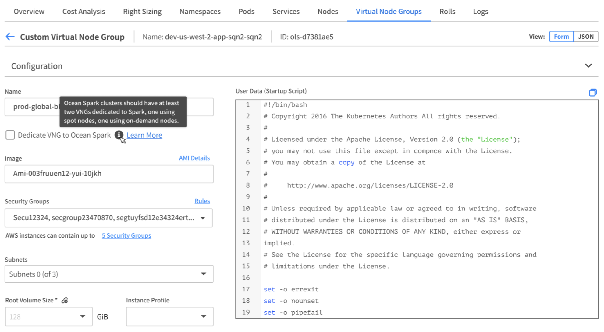 These VNGs are dedicated to Ocean Spark, and they have certain best practice configurations automatically set in them (root volume size and a user data script to mount local SSDs when they are available).